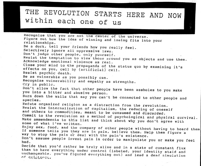 2. Lista “A Revolução começa aqui e agora, dentro de cada um de nós”, extraída da terceira edição do zine Riot Grrrl. Texto da Kathleen Hanna.