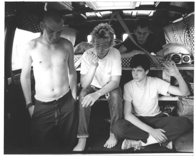 3. Ian MacKaye, Brian Baker, Jeff Nelson e Lyle Preslar – O Minor Threat na Van do Inferno. (Foto: Al Flipside)