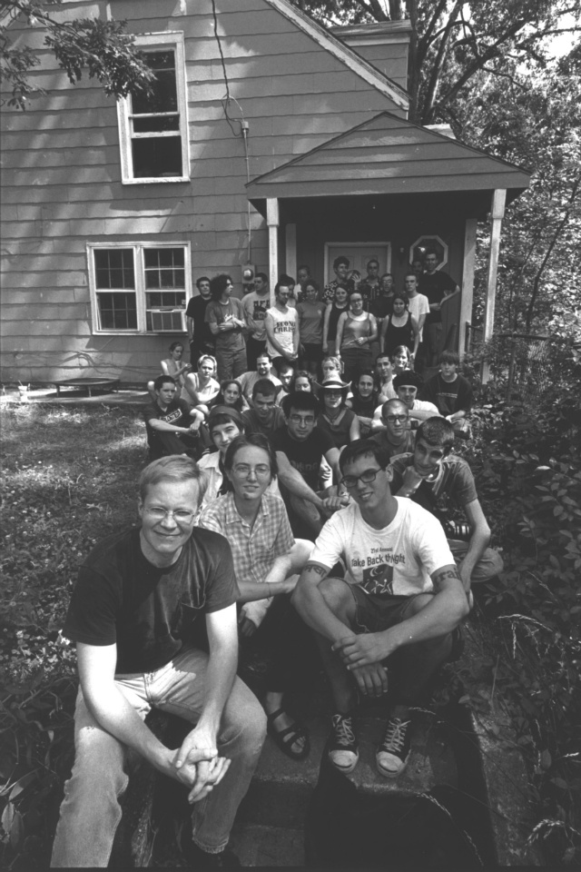 “Essa foto foi tirada em junho de 2000, apenas alguns meses antes da venda da casa da Positive Force pelo seu proprietário para dar lugar a uma pavorosa McMansão. A essa altura, a PF estava em seu décimo quinto ano de militância, e toda uma nova geração de ativistas, a grande maioria com raízes na cena anarco-punk, conduzia o coletivo para novas direções. Ao mesmo tempo em que esse mix era conflituoso – levando a uma séria divisão em 2005 – o grupo viveu indiscutivelmente sua fase mais vibrante nesse período, pelo que se pode afirmar diante do número de pessoas que participavam das reuniões.”