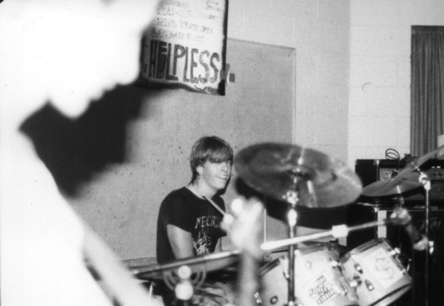 “Essa foto é da época do Verão Revolução, quando Dave era um adolescente sem barba na cara com uma infecciosa, contagiante atitude e já demonstrando uma formidável habilidade na bateria. O Mission Impossible foi uma das mais importantes bandas jovens desse momento de renovação na história do punk de DC. Por mais que o Mission Impossible tenha durado pouco, eles – como muitas bandas de DC daquele período – fizeram cada segundo valer a pena. Seus shows exploravam todas as possibilidades, nada parecia impossível de se fazer... O espírito do punk encarnado.”