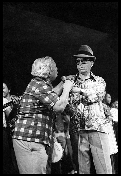 “Art Blakey veio ao Brasil em 1977 com seu fantástico grupo de músicos americanos tocar jazz da melhor qualidade. Entre eles, havia um trompetista russo, e como o Brasil estava com relações cortadas com a União Soviética, entrou quase clandestinamente no país. Blakey, rindo muito, apresentou seus músicos ao público durante o show: ‘Ladies and gentlemen, let me introduce the Jazz Messengers in our first Brazilian tour. On alto saxophone, from Lawrence, Kansas, Bobby Watson; on tenor saxophone, from Newark, New Jersey, David Schnitter; on piano, from Richmond, Virginia, Walter Davis Jr.; on bass, from New York City, Dennis Irwin; and on trumpet, from Harlem, New York, Valeri Ponomarev’. [Senhoras e senhores, deixem-me introduzir os Jazz Messengers em nossa primeira turnê brasileira. No sax alto, de Lawrence, Kansas, Bobby Watson; no sax tenor, de Newark, Nova Jersey, David Schnitter; no piano, de Richmond, Virginia, Walter Davis Jr.; no baixo, de Nova York, Dennis Irwin; e no trumpete, do Harlem, de Nova York, Valeri Ponomarev] O trompetista Valeri, com aquela cara de agente da KGB, olha para o sacana do Art sem acreditar. Estive lá vendo, ouvindo e fotografando, mas essa história me foi relembrada pelo amigo e grande crítico de jazz José Domingos Raffaelli.”