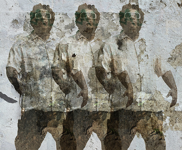 “BNegão é meu vizinho no prédio em que moramos em Santa Teresa, Rio de Janeiro. Conheço ele desde os tempos em que criou, com outros vizinhos do condomínio, a banda Funk Fuckers e depois o Planet Hemp. Essa foto é uma referência a uma serigrafia de Andy Warhol em que se usa uma imagem do cantor Elvis Presley com um revólver na mão, estilo cowboy. Em vez de serigrafia, apliquei a foto do Bernardo numa parede do nosso prédio e substituí o revólver por um microfone.”