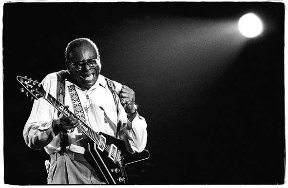 “Albert King nasceu no Mississipi e trabalhou durante a juventude nos campos de algodão de fazendas dominadas por brancos escravocratas. Ele se tornou um dos guitarristas mais influentes na música do século 20. Hendrix, Clapton e Mayall o reverenciavam em seus bluesy solos. Aliás, como Hendrix, era canhoto e tocava com o braço da guitarra invertido, igual ao mago de Woodstock. Hoje, quando vejo as fotos que tirei desse lendário músico, ainda sinto a vibração das cordas de sua guitarra.”