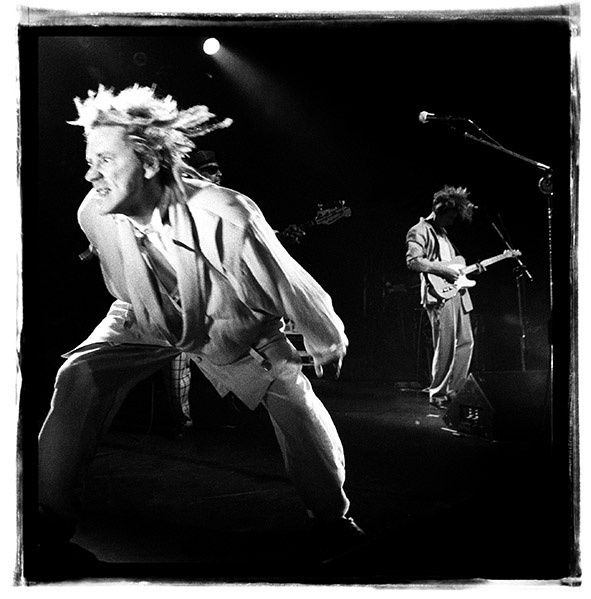 “Joãozinho Podre, vocalista do Sex Pistols, esteve no Brasil com sua banda pós-Pistols, o Public Image Ltd, (PIL), e incendiou o Canecão. Fotografei na beira do palco, entre gritos, perdigotos, latas de cerveja voadoras, solos de guitarra, bolas de papel, críticas sociais, sarcasmo e muita adrenalina. No meio do caos, um show instigante para nunca mais esquecer. Na foto, ao lado de Johnny Lydon, o guitarrista Lu Edmonds.”